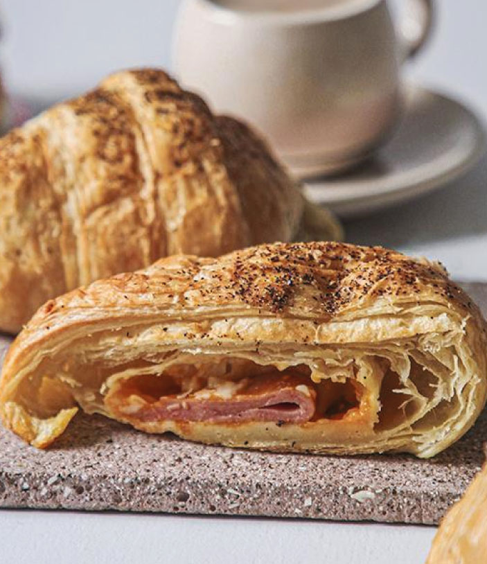 Descripción del producto Todos nuestros productos están pensados para compartir, conozca sus diferentes tamaños y seleccione el que más se ajuste sus necesidades. No olvide tener en cuenta que todos nuestros procesos de producción son artesanales. Croissant individual / Peso 90 gr aprox. Información de consumo · Todos nuestros productos son elaborados artesanalmente con ingredientes naturales de la mejor calidad. · El producto debe consumirse una vez abierto y antes de la fecha de vencimiento. · Se recomienda conservarse en un lugar fresco y seco, protegido de la luz y alejado de olores contaminantes.